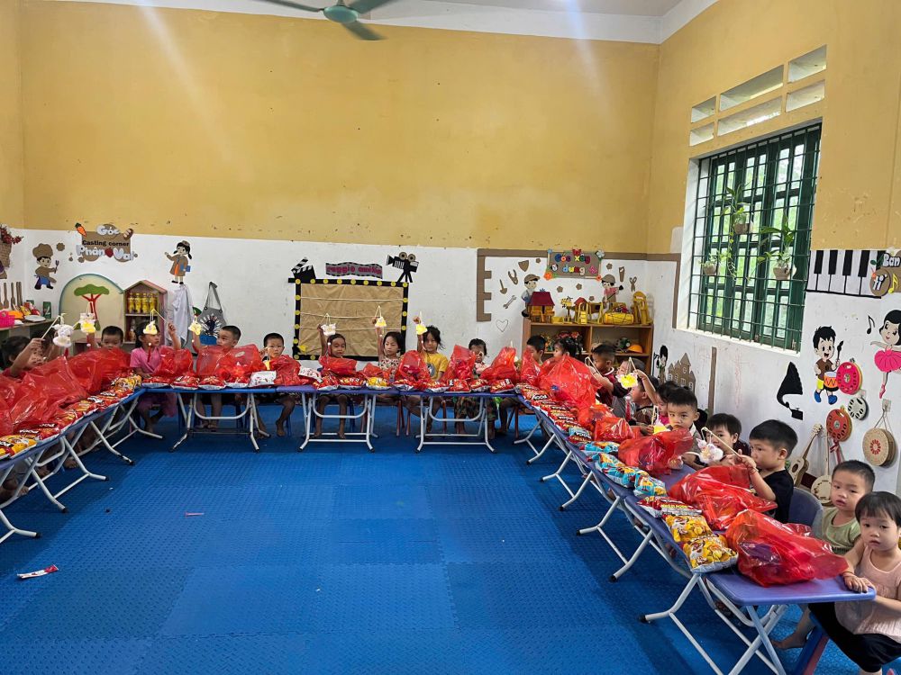 Nhà tài trợ nhóm thầy Trần Công Sơn- sư thầy Thái Bình cùng cô Thắm Thức thôn 9, cô Lê Cẩm thôn 3B đã trao cho trẻ: 311 xuất quà; Giường ngủ cho trẻ: 73 cái; Quà cho trẻ đặc biệt khó khăn: 02 xuất.